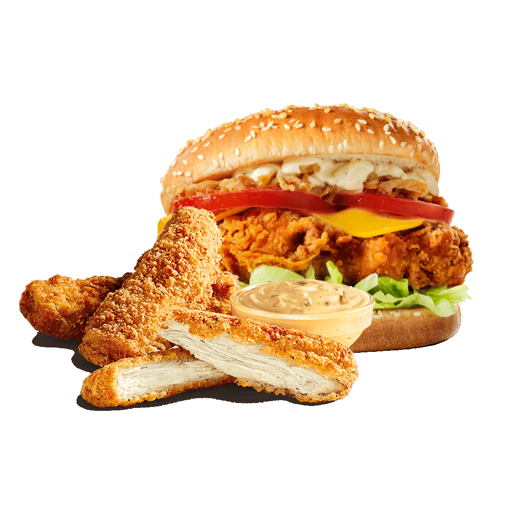 Enjoy our 1 chicken sandwich paired with 1 chicken tender. A satisfying choice from the main category, perfect for a tasty meal!