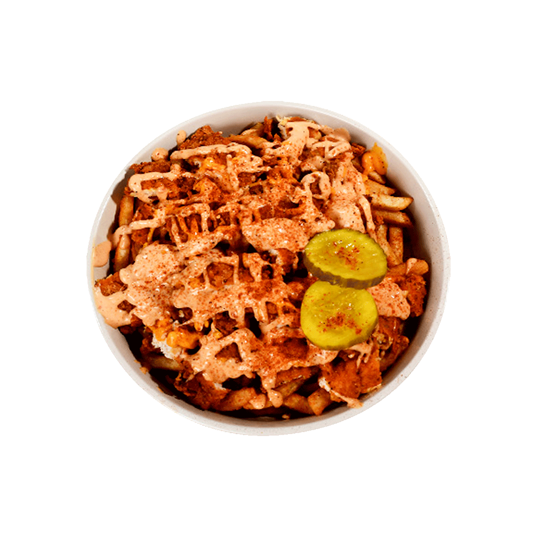 Enjoy our loaded fries, available with waffle fries or regular fries, topped with your choice of chicken or shrimp. A tasty main dish!