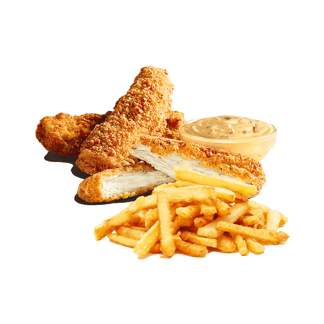 Enjoy our 3 chicken tenders with fries, a satisfying main dish. Perfectly cooked chicken paired with crispy fries makes for a delightful meal.